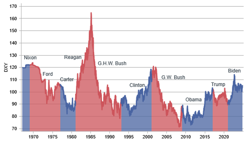 USD PERFORMANCE (DXY) UNDER DIFFERENT US PRESIDENTS