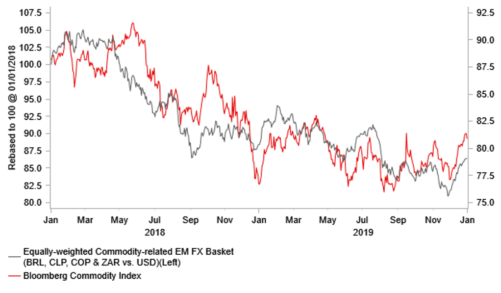 Emerging market currencies have weakened against the USD following the US election. A Trump victory and likely Red Sweep is the most bullish outcome for the USD and will reinforce downward pressure on emerging market currencies in the year ahead. We expect Donald Trump to implement higher trade tariffs more quickly during his second term as President. Threats to raise import tariffs of up to 60% on China and to impose a 10% import tariff on all of the major trading partners of the US would represent a significant step up compared to the trade war started during Trump’s first term as President. Major trading partners would likely retaliate by imposing higher tariffs on imports from the US adding to downside risks for the global growth outlook. Those risks will only be partially offset by plans to step up fiscal stimulus in countries that are hit hardest by tariffs such as in China. The weakening global growth outlook and lower commodity prices should result in commodity-related emerging market currencies underperforming. Two of the worst performing emerging market currencies during the start of Trump’s first trade war between 2018 and 2019 (tariffs were first raised on China in early 2018) were the Latam currencies of the BRL and CLP as both declined by almost 20% against the USD. Not far behind were the ZAR and COP which declined by almost 15% and 12% respectively.