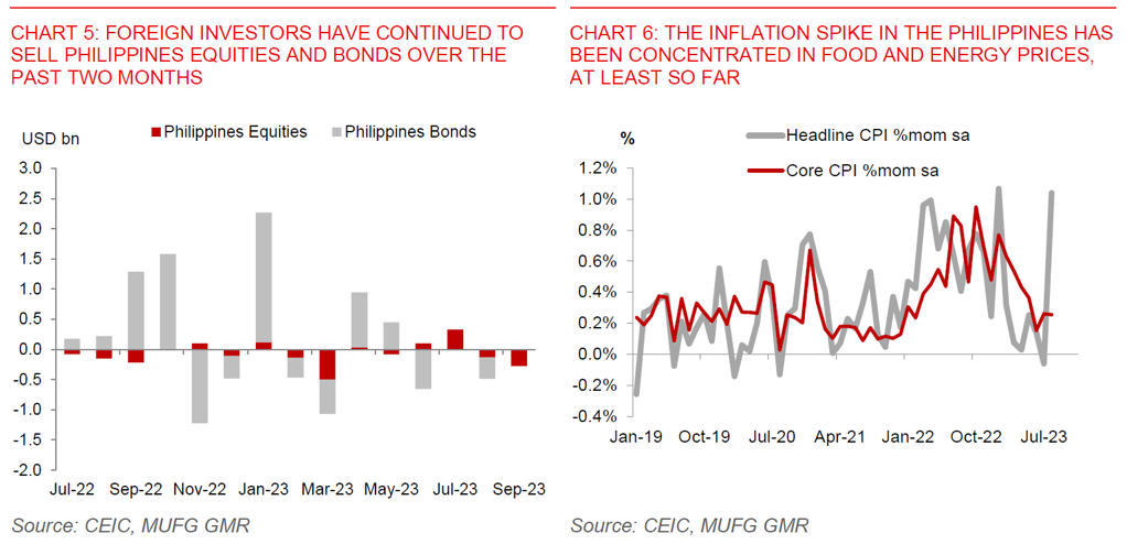 - Domestically, the pickup in food prices adds further to a worsening growth vs inflation trade-off for the BSP as evident in the latest monetary policy decision, and also comes at a time when growth has already slowed down.