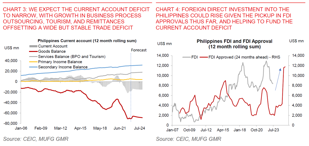 - Third, while FDI flows into the Philippines have slowed thus far, FDI should improve more meaningfully in 2024 with the rise in FDI approvals seen so far.