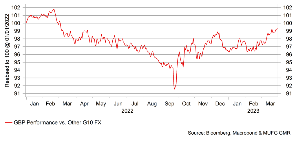 The pound ended March as the best performing G10 currency on a year-to-date basis which we believe reflects the degree of pessimism that was priced into the pound following last year’s political instability and the turmoil in the Gilt market. PM Rishi Sunak has restored some political stability as has Chancellor Hunt. The budget presented in March was viewed as balanced with some giveaways but also offset by tax increase measures like the increase in the corporation tax from 19% to 25%. Importantly, the budget, due to lower inflation, provided some additional fiscal space in order to offer higher public sector wages that looks likely to bring an end to some of the strike actions within the NHS and transport. Finally, a deal on the Northern Ireland Protocol, even without DUP support, has helped lift optimism of better UK-EU relations going forward. All of these factors have helped change the political landscape relative to the end of last year.