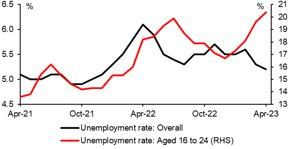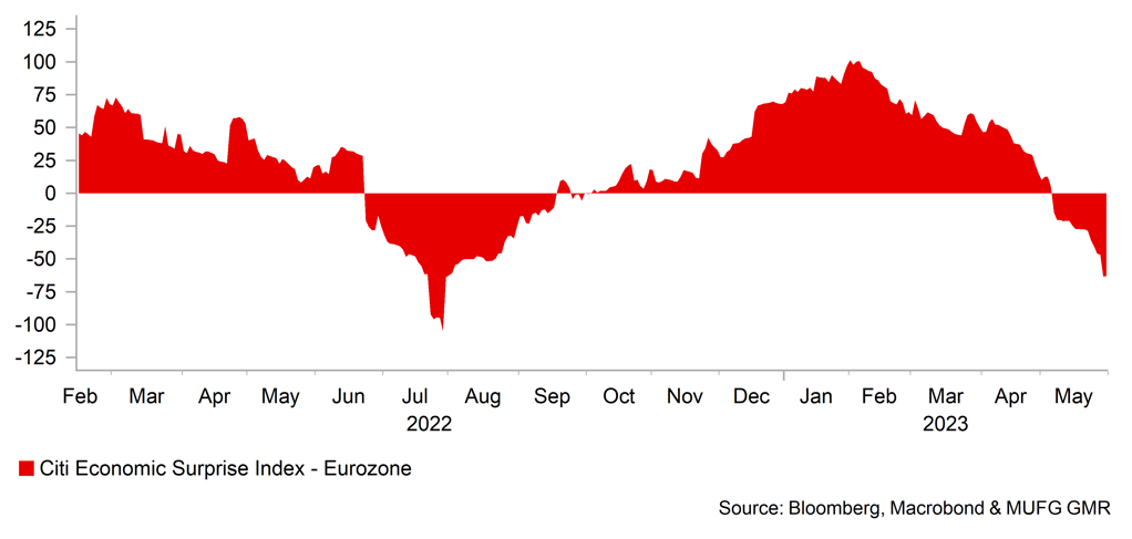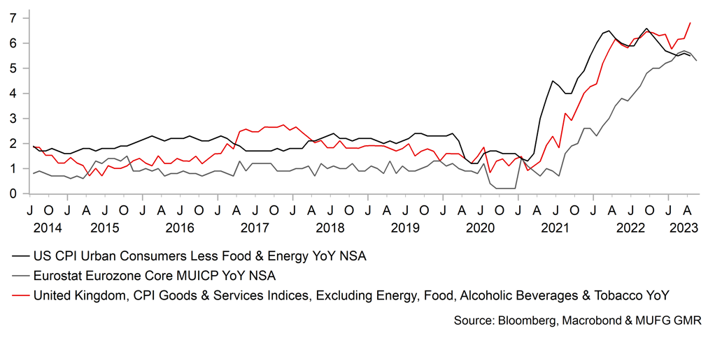 We have under-estimated the stickiness of inflation in the UK and while we still maintain that inflation will fall quite sharply through the remainder of the year, the risks are clearly skewed toward a slower drop. The BoE may now push rates to a peak of 5.00%, 25bps higher than our previous call. The 10-year Gilt yield jumped notably, by 46bps to close at 4.18%. A lot of tightening has yet to hit the economy. As the BoE Monetary Policy Report in May pointed out, only around 70bps of the 415bps of tightening (before May’s hike) had fed through in the mortgage market and the feed-through will accelerate as more fixed rate mortgages re-set over the coming months. The fact that inflation in the UK is slower to retrace lower, we believe the BoE will feel compelled to act again in June and possibly in August. June is practically a done-deal August is a close call. Jobs and wage data will determine the August decision. Nonetheless, whether its 25bps or 50bps more of tightening, we see longer-term rates as declining in H2 as investors’ concerns shift from high inflation to weak growth. Weak demand for credit, early signs of weakening employment and sharp falls in energy prices will all help shift the focus and help push yields lower.