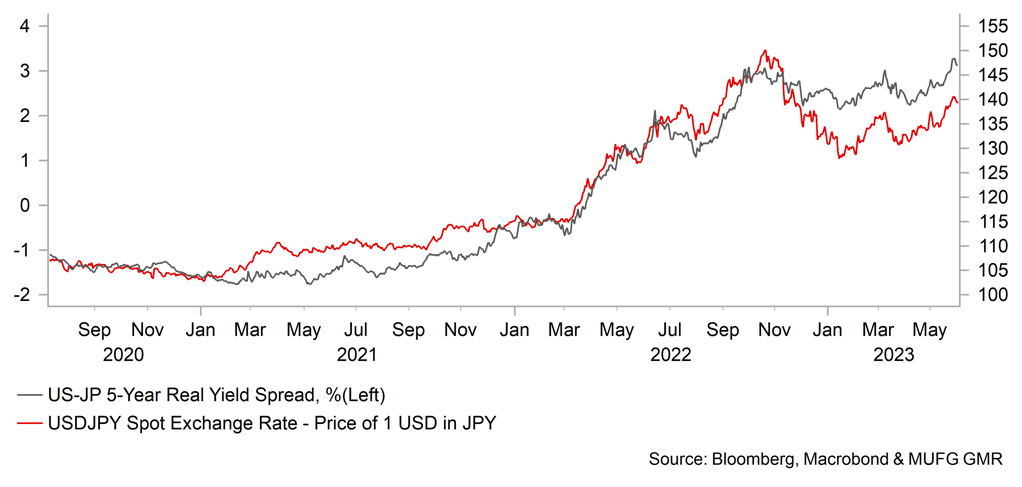 USD/JPY VS. US-JAPAN 5-YEAR REAL YIELD SPREAD