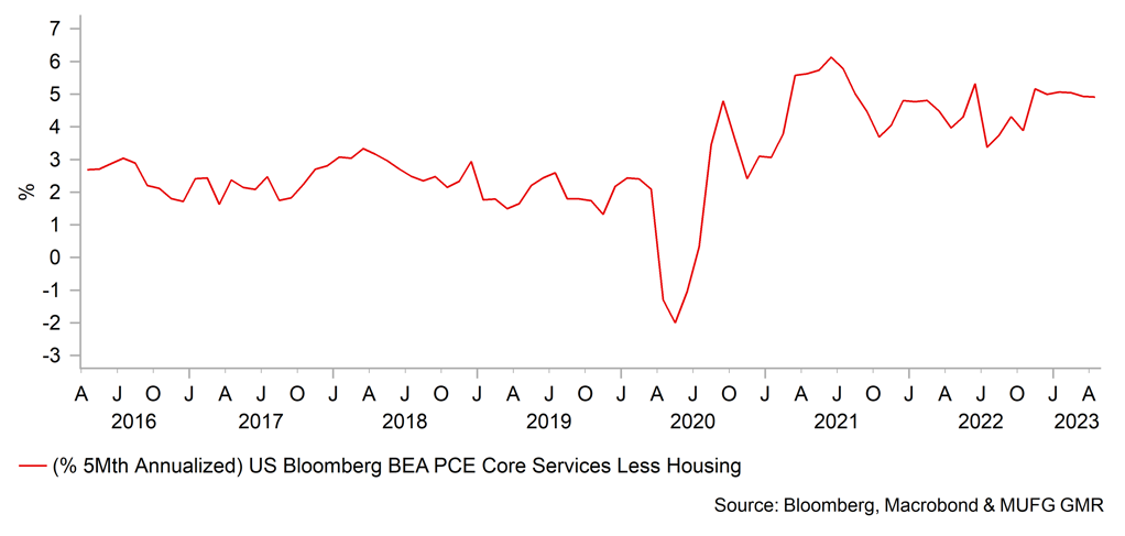 The pound depreciated against the dollar in May but was the fourth best performing G10 currency with yield perhaps helping to support the pound. The 2yr Gilt yield surged 54bps in May, outstripping the 39bps gain in the UST note yield increase. A good portion of this gain followed the very disappointing inflation data for April. While the overall CPI YoY rate declined from 10.1% to 8.7%, the drop was much less than expected. The utility bill base effect related to energy prices was well flagged but many other areas of the economy revealed a further acceleration in inflation. The YoY rate surpassed the pessimistic projection of the BoE, which was put at 8.4%. Food inflation remained elevated and tax changes played a part as well but core CPI YoY picked up from 6.2% to 6.8%. The YoY rates for rents, transportation, communications, recreation and miscellaneous all accelerated highlighting the broadening of inflation pressures beyond food and energy. The scale of the UK’s inflation problem is diverging from the US and the euro-zone.