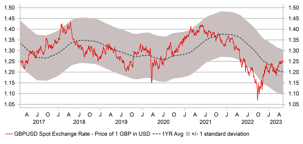 GBP/USD VS. 1-YEAR AVERAGE - GBP has outperformed at start of this year as pessimism has eased