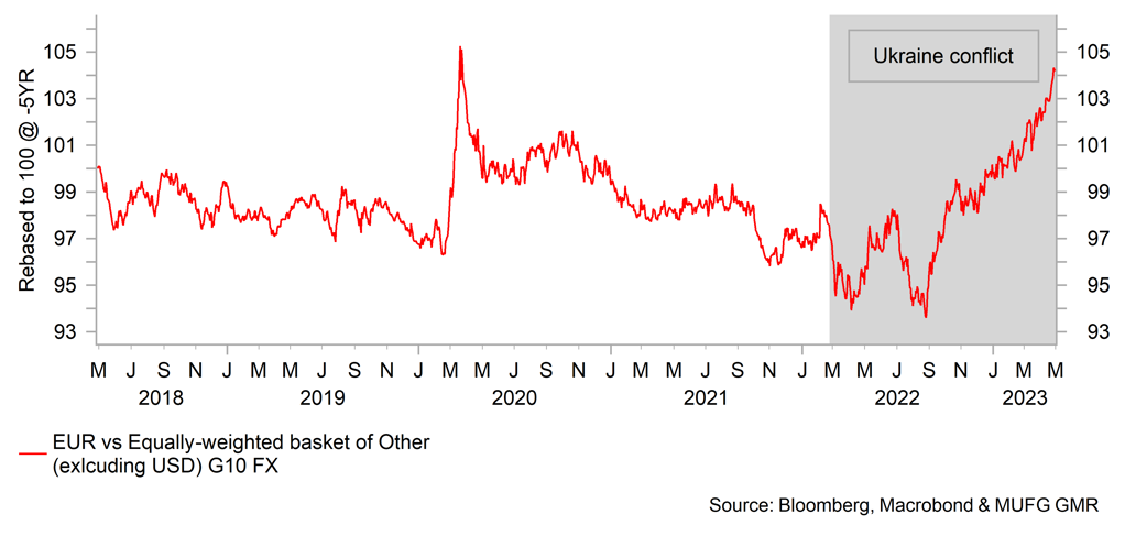 PERFORMANCE OF EUR VS. NON-USD G10 FX - EUR has strengthened sharply since last summer