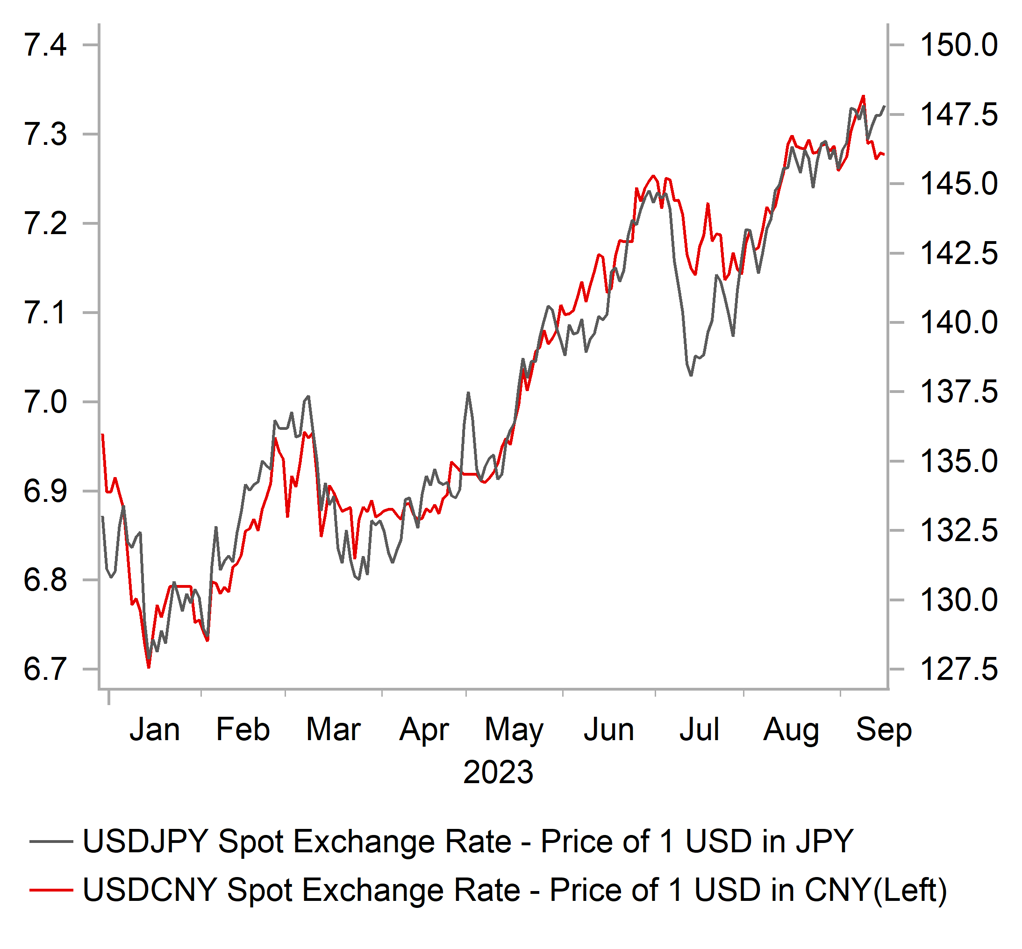 At the same time, policymakers in China have pushed back more strongly against CNY weakness after USD/CNY hit a high of 7.3503 on 8th September. In a strongly worded statement, the PBoC warned those speculating in anticipation of a weaker CNY that “we are capable and feel confident…in keeping the renminbi exchange rate at a reasonably stable level. We will act when we act, resolutely correcting one-sided appreciation.” With the China officially holding FX reserves of just over USD3 trillion,