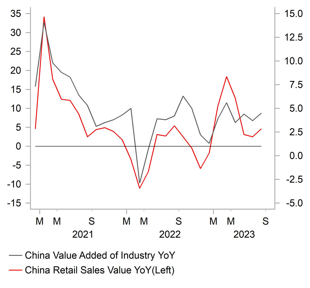 and the state banks reportedly having a USD1 trillion balance sheet, policymakers have the firepower to support the renminbi if they desire. The measures have proven successful at least initially in bringing down USD/CNY back below the 7.3000-level where it has been consolidating this week. Negative investor sentiment towards China’s economy has also improved at the end of this week following the release of the stronger monthly activity data for August. It was revealed that retail sales and industrial production growth both picked up in August indicating that policy stimulus is beginning to have a supportive impact for China’s economy. However, weakness continued in the housing sector where it is still too early to see the impact of recent measures implemented to boost housing demand. The PBoC is continuing to lower rates with a 25bps cut for the reserve requirement ratio. Widening yield spreads in favour of a higher USD/CNY will continue to make it challenging for Chinese policymakers to prevent the CNY from weakening further without a continued improvement in investor sentiment towards China’s economy.