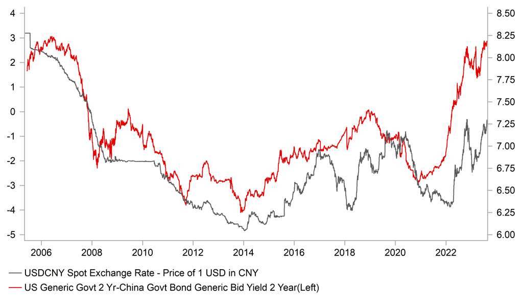 2YR US-CHINA SPREAD BACK AT 2007 LEVELS