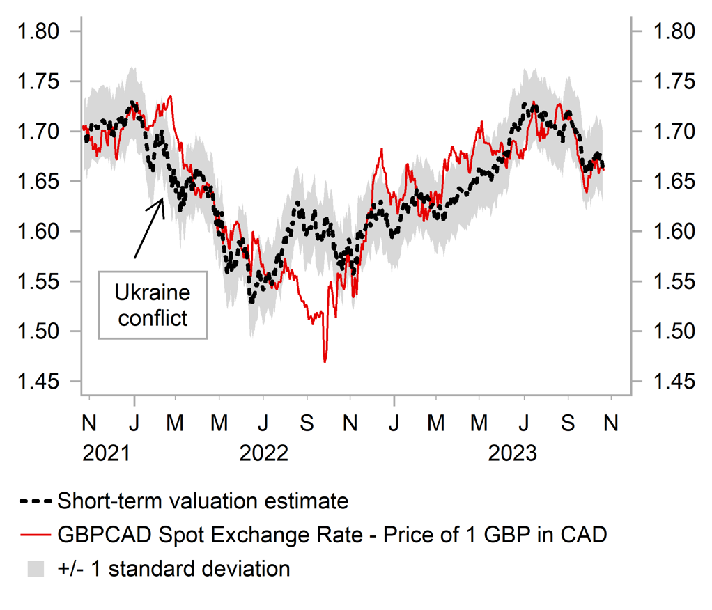 In these circumstances, the CAD stands to benefit initially if the conflict in the Middle Eat broadens out and the price of oil rises above USD100/barrel. However, the BoC policy outlook is not as favourable so upside potential should be less than last year. We are recommending a new short GBP/CAD trade idea.