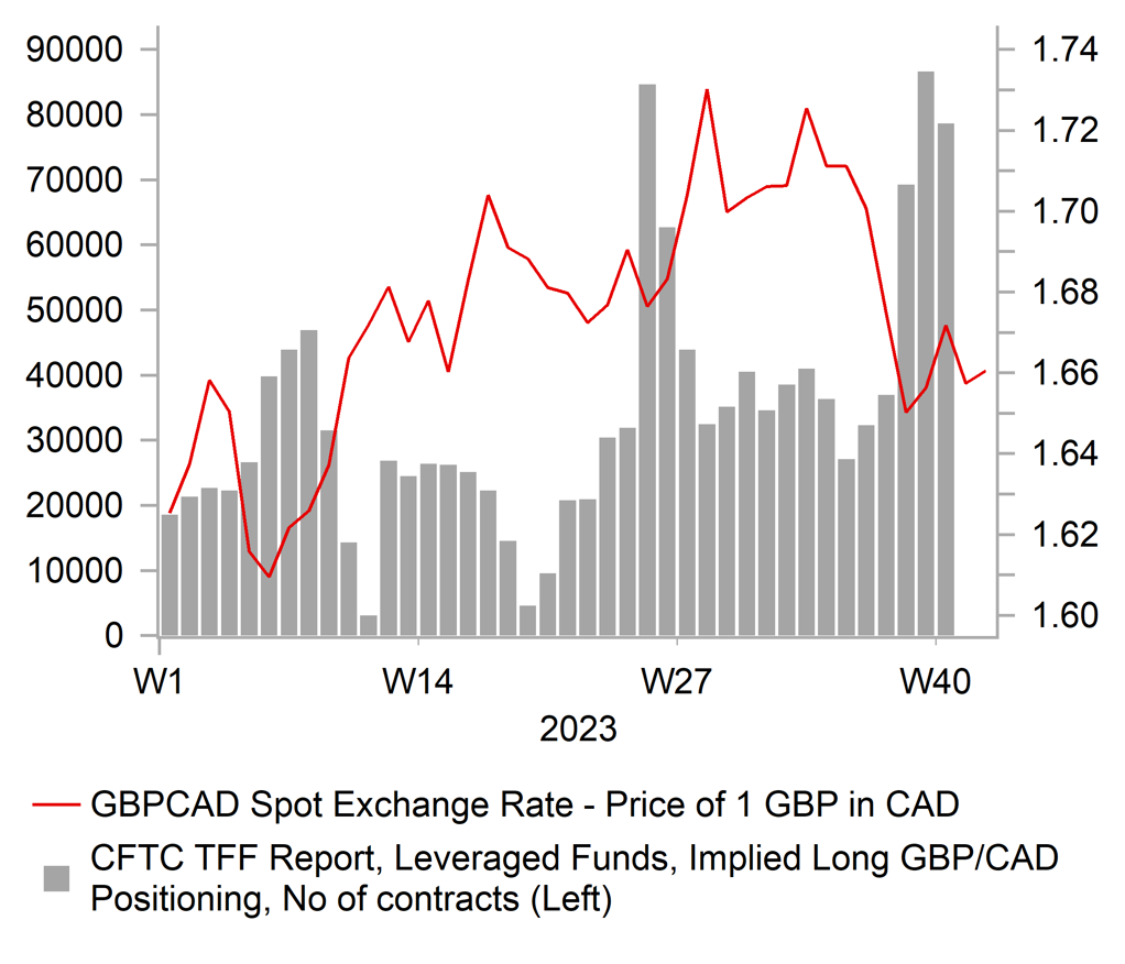Speculation over one further rate hike has diminished over the past week after core inflation measures dropped back in September, although they remain uncomfortably high for the BoC between 3.50% and 4.00%. Unlike in the US, Canada’s economy has been expanding below potential so far this year (+1.1%YoY in July) which should help to further ease domestically driven inflation. The Canadian rate market is currently pricing in only 4bps of hikes for next week, and 7bps by December, which suggests that the CAD could prove more sensitive to a hawkish BoC policy surprise in the near-term. Beyond this year though we believe that the Canadian rate market is currently under-pricing the risk of BoC rate cuts. There are only around -6bps of cuts priced by the end of next year compared to -60bps for the Fed even as Canada’s economy is already responding more negatively to higher rates than in the US.