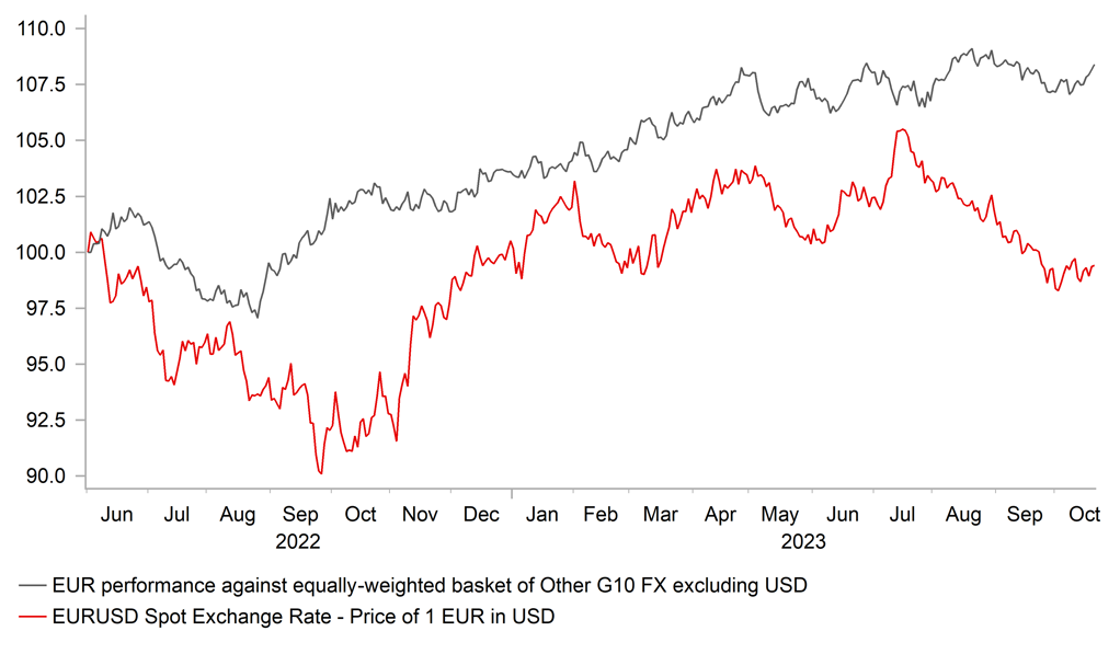 The key macro event for the financial markets next week will be the ECB monetary policy announcement on Thursday. After raising the key policy rate by 25bps to 4.00% in September, the ECB altered its forward guidance in the accompanying statement. The message that “Governing Council considers that the key ECB interest rates have reached levels that, maintained for a sufficiently long duration, will make a substantial contribution to the timely return of inflation to target” is very likely to be repeated in the statement in Thursday. This will be no surprise to the financial markets with the OIS market currently indicating precisely zero basis points of tightening by the ECB at next week’s meeting and a mere 3bps by the end of the year. So the tone of President Lagarde’s comments and certain aspects of ECB policy management will be the key determinant of market moves in the period following the announcement.