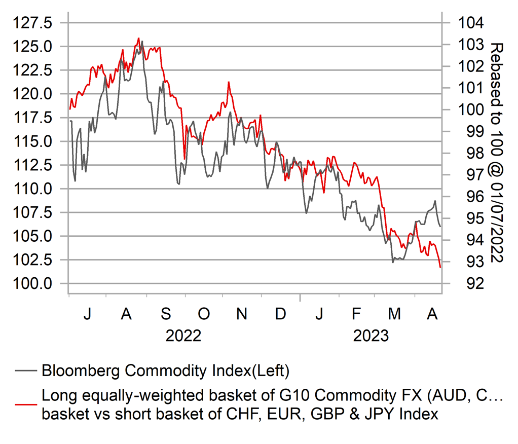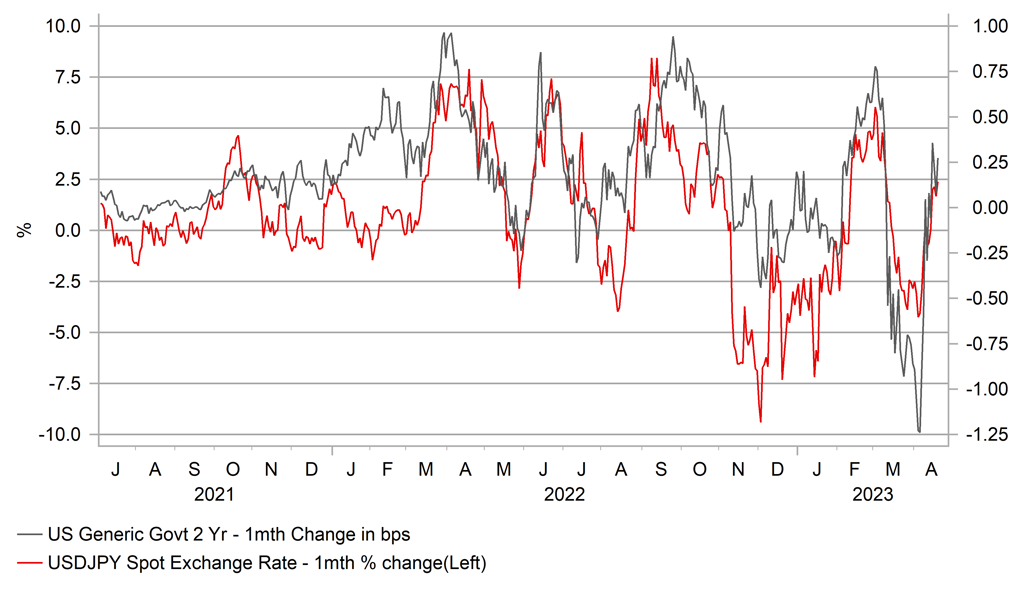The USD has staged a modest rebound over the past week after the dollar index hit a year to date low last Friday at 100.79. The USD has derived support from the scaling back of more dovish expectations for Fed policy. The rate market has moved to fully pricing in one more 25bps hike from the Fed in the current tightening cycle, and is now only fully pricing in one 25bps rate cut by the end of this year. It has resulted in the two-year UST yield climbing from a low of 3.55% late last month to a recent high of 4.28%. However, the scope for US yields to continue moving higher from here should prove more limited. Recent comments from New York Fed President Williams signalled that he would be comfortable with the Fed delivering just one more hike then pausing their hiking cycle. At the same time, the incoming economic data flow continues to signal an increasing risk of sharper slowdown/recession for the US economy that will open the door for rate cuts later this year. The Conference Board’s leading index has contracted for twelve consecutive months now and recorded its largest monthly decline in March since the worst point of the COVID shock back in April 2020. In contrast, the growth outlook has been improving outside of the US. Economic growth in China surprised significantly to the upside in Q1, and leading economic indicators in Europe including the PMI surveys for April have signalled that downside risks to growth continue to ease at the start of this year.
