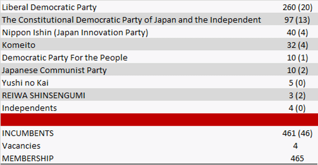 CURRENT DIET POLITICAL PARTY SEAT COMPOSITION