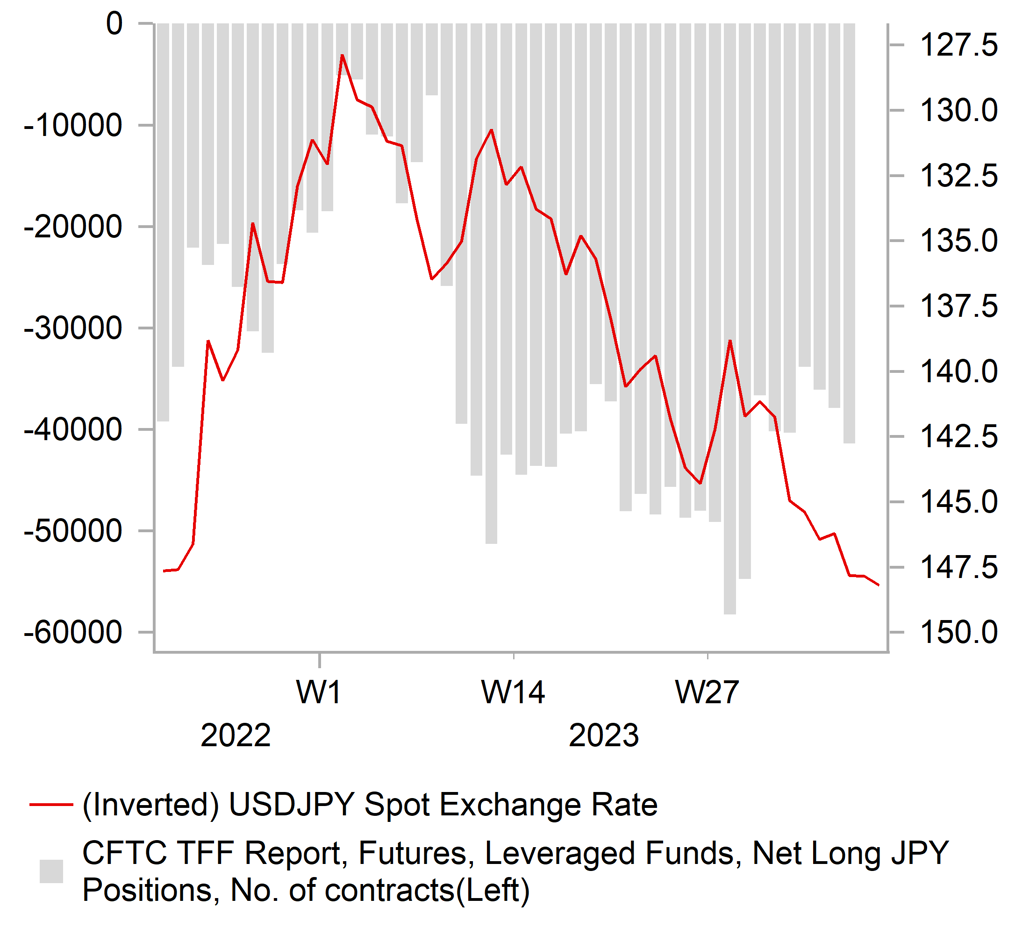 In these circumstances, we believe that upward momentum continues to favour further USD upside vs. FX majors while the US economy is still outperforming. The heightened risk of intervention should though remain a dampener for USD/JPY upside.