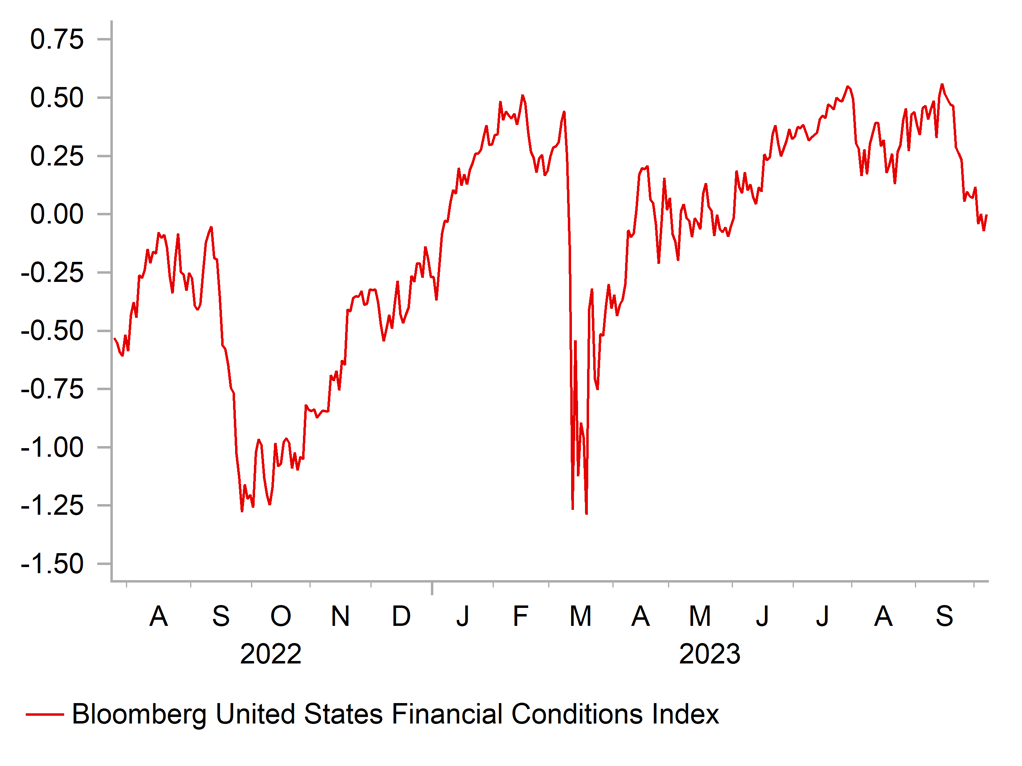 However, the first signs are at least starting to emerge from Fed officials that they are not fully comfortable with the recent sharp adjustment higher in US yields. San Francisco Fed President Daly stated that “if financial conditions, which have tightened considerably in the past 90 days, remain tight, the need for us to take further action is diminished”. She likened the recent move higher in market yields to the impact of a 25bp Fed hike. Even the normally more hawkish Cleveland Fed President Harker stated that the move higher in US yields was “certainly going to feed into” decisions about whether another rate hike was necessary this year. It supports our view that the Fed will not follow through on plans for one more hike in November or December.