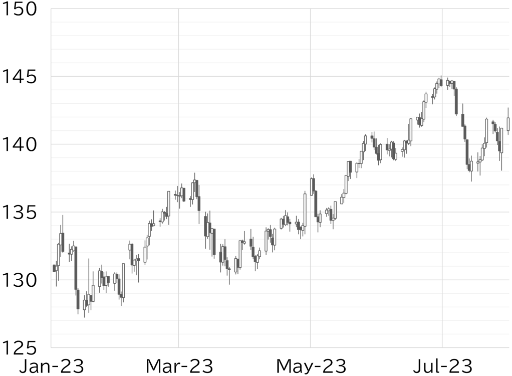 The BOJ voted to make the YCC more flexible at its monetary policy meeting in July. The permissible range of ±0.5% was changed to a reference point and it raised the yield for conducting fixed-rate purchase operations in principle on every business day to 1.0%. The move can be seen as essentially ending the YCC policy or a de facto interest rate hike. However, the Bank has kept its easing measures in place and has denied that it is moving to normalize policy. The decision appears to have been made with an eye to curbing yen weakness, but although it resulted in higher long-term interest rates, it did not erode confidence in yen selling. Meanwhile, the dollar looks poised to weaken with the Fed in the final phase of its rate hike cycle, and yen selling based on real demand in Japan is losing momentum. We therefore do not expect a significant break above the end-June high of 145.