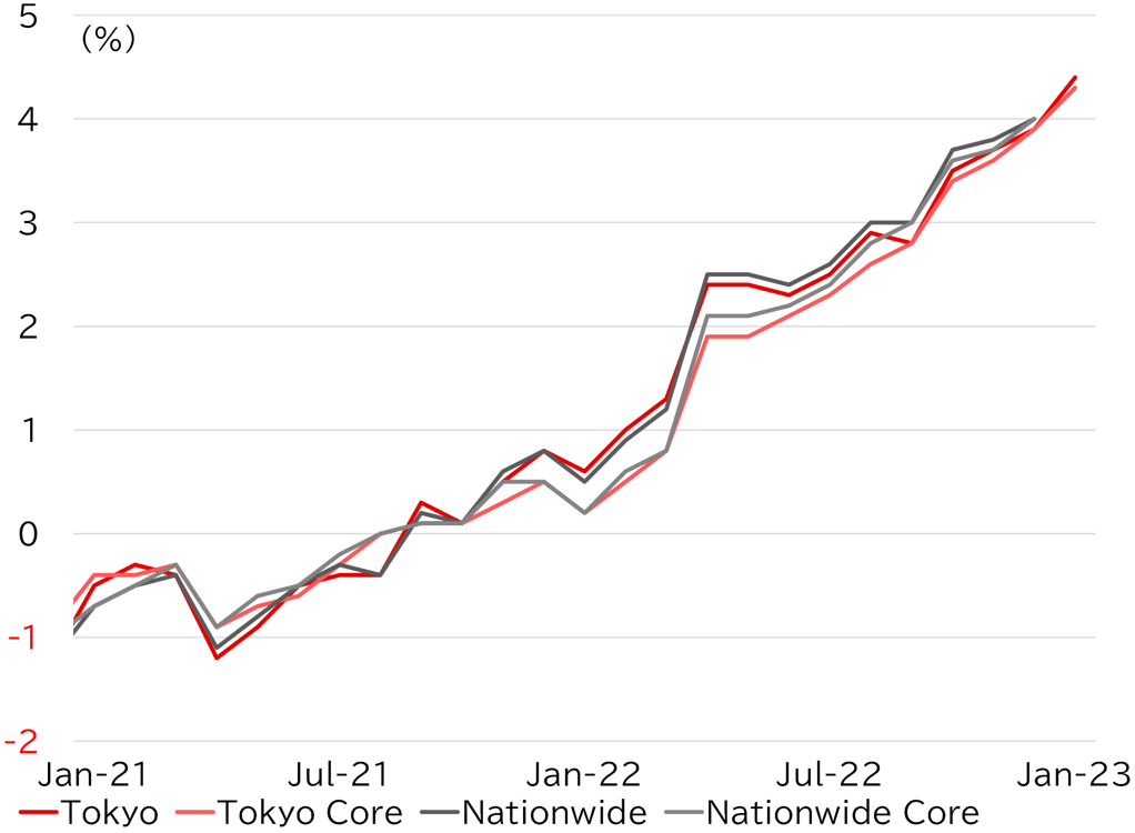 Second, the BOJ's talk of policy adjustment at the monetary policy meeting in December has increased expectations that the Bank will move to normalize monetary policy, but it appears to be a case of taking three steps forward and two steps back. Reports that the government and the BOJ were considering revising the joint statement became a focus for overseas investors in particular, acting to accelerate yen buying on expectations that the BOJ would end its YCC policy at the January policy meeting. However, the BOJ ended up increasing the flexibility of its funds-supplying operations against pooled collateral in order to support YCC, which seems to have stopped excessive expectations for the normalization of monetary policy. The USD/JPY is also showing firmness. However, we see no indication that yen-selling sentiment will return because the announcement of a new BOJ executive post-Kuroda is just around the corner and inflation in Japan is accelerating (Figure 4).