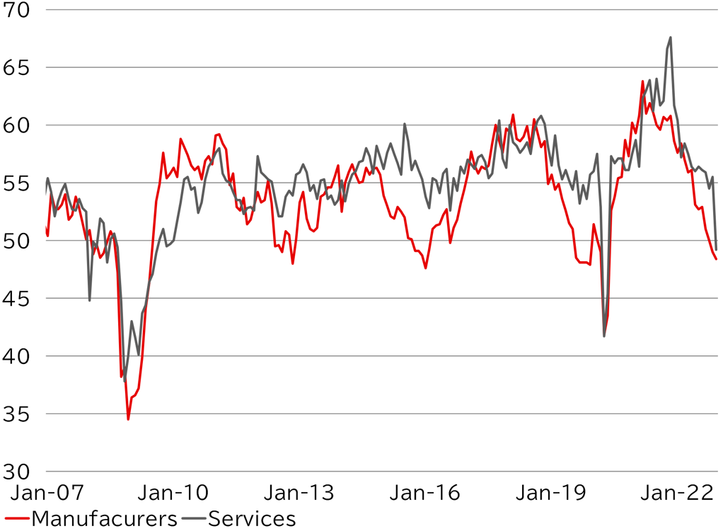 First, in the US, economic indicators have continued to miss market expectations. The ISM index in December fell below the watershed 50 level for both manufacturing and non-manufacturing (Figure 3). The YoY declines in leading economic indicators are also growing. The CPI in December confirmed a slowdown in inflation, prompting senior Fed officials to start talking about disinflation. Under these circumstances, it is almost certain that the FOMC meeting statement on 1 February will show a further reduction in the pace of interest rate increases, from 50bp in December to 25bp. Expectations have therefore already been toned down from the start of the year, when the market anticipated that the Fed would likely stick to a 50bp increase. Some data, such as the 4Q GDP report, suggest the US economy is solid, but the market still expects the Fed to take monetary policy in a more dovish direction, which has encouraged the dollar to remain weak.