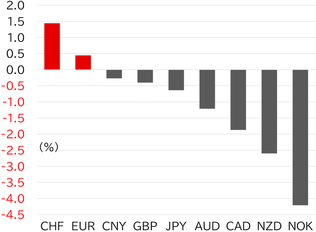 The increase in tensions in the Middle East following the attack by Hamas on Israel has not spread into a broader regional or religious/ethnic conflict. Israel is continuing to perform retaliatory strikes, and it is uncertain whether this will bring neighboring countries into the conflict. As a result, major currencies such as the Swiss franc, euro, dollar, sterling, and yen were relatively strong in October, while currencies of resource-producing countries and emerging countries were weak, although the market was not overwhelmed by a state of emergency dollar buying. It can be said that the market has broadly priced in geopolitical risks. (Figure 2).