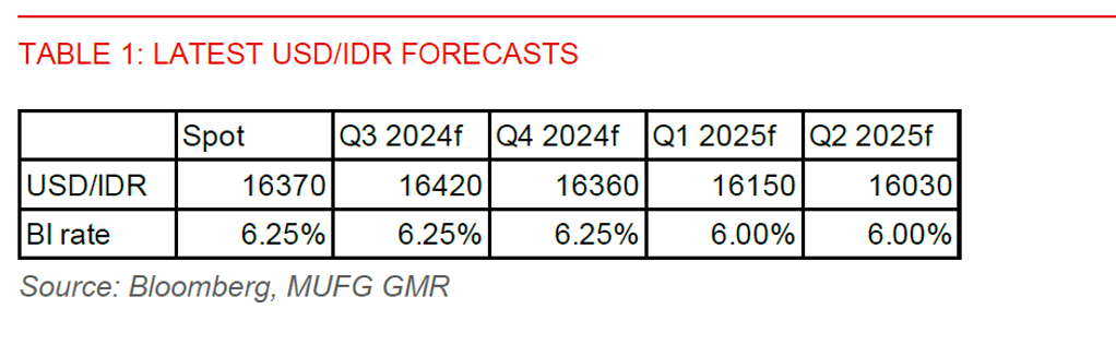 - With Indonesia’s current account also no longer in surplus, the rupiah is susceptible to global pressures. To be fair, Bank Indonesia has reacted quickly to rupiah weakness by intervening in the FX market, raising the policy rate twice in October 2023 and in April, and launching rupiah securities (SRBI) to retain capital and attract foreign inflows. Yet, markets continue to test the BI’s resolve. As such, we have become more cautious about the rupiah, revising up our USDIDR forecast to 16,420 in Q3 from 15,900 previously, and to 16360 in Q4 from 15700 previously. The modest IDR strength in Q4 is in anticipation of the Fed cutting rates once while the BI keeps rates at 6.25%.