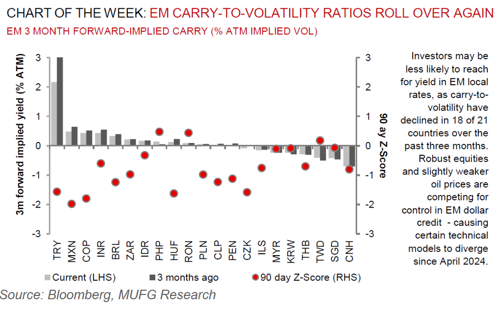 The latest monthly IIF flow data signalled that EM securities attracted USD5.5bn of inflows in May 2024 – the weakest level since October 2023. The rationale for the weakening trend is on the back of ongoing EM investor caution suggests surrounding the higher-for-longer DM rates narrative, alongside an elevated degree of volatility stemming from geopolitics and fragmentation uncertainty.