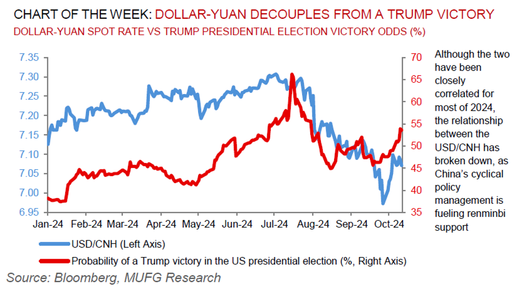 In the week ahead, there will be a rate meetings in Egypt (MUFG and consensus: on hold at 27.25%) and Turkey (MUFG and consensus: on hold at 50.00%). We will get September CPI data in Israel (MUFG and consensus: up 0.1ppt to 3.7% y/y). Elsewhere, global markets will await a concrete figure from China’s fiscal stimulus, with specifics potentially come either at the upcoming State Council executive meeting or the NPC standing committee meeting (the latter of which is when budgetary approvals can be finalised).
