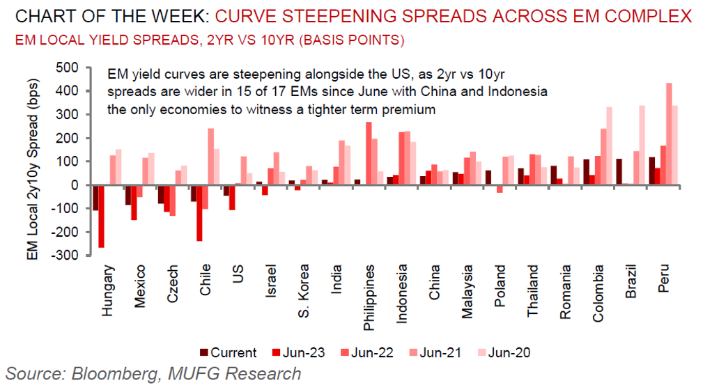 It seems to us most of the reading out there on EM is on the bearish side. Cyclical data in the US has been better than expected while geopolitical risk has increased significantly. Yet in the face of this price action is holding up much better than the narratives suggest. Most risk assets are not too far from levels than they were before the good NFP while certain EM FX pairs like ZAR and MXN have surprisingly strengthen. Thus we would focus on this rather than hypothesising on the huge unknowns that could eventuate from the Israel conflict.
