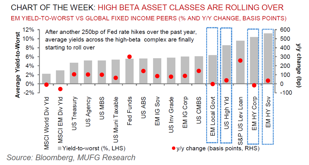 The Federal Reserve’s (Fed) updated projections solidify the factors that have helped the USD defy expectations this year. Surprisingly strong activity and a resilient labour market have led both markets and the Fed to recalibrate the profile for real rates. In a month of broad USD strengthening and rising oil prices, COP and BRL have been the best performing EM currencies, supported by their rising oil betas and slower rate policy normalisation relative to other “early hikers” (see here and here). After a strong run, the Colombian Peso is trading near its strongest levels year-to-date. While there is room for some additional spot appreciation, the carry component is likely to become an increasingly larger contributor to total returns from here.