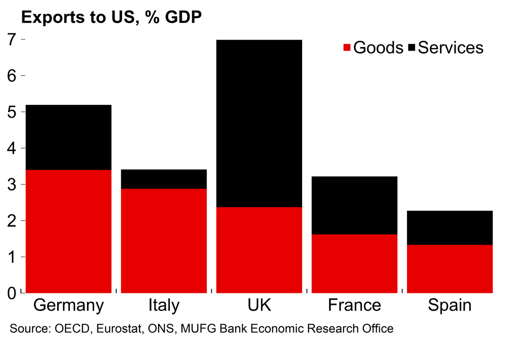 As we’ve noted previously, Germany – the UK’s second largest trade partner after the US – looks notably vulnerable to second round effects on confidence and the labour market from an increase in US goods tariffs. A euro area slump is a key downside risk for the UK outlook. However, it’s plausible that US demand for UK services could benefit from the introduction of any expansive fiscal policies in the US which may work to offset weaker external demand elsewhere.