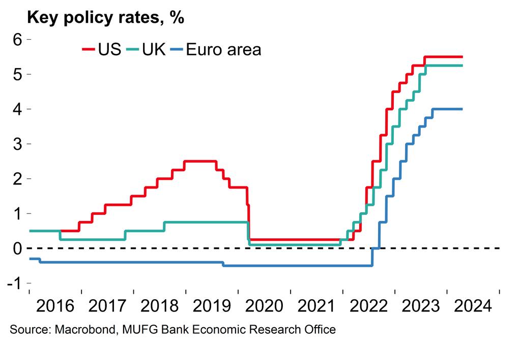 - So, a lot for policymakers to process. We remain confident that the UK disinflation process remains on track despite the upside surprises on inflation. Indeed, in isolation the UK economy may now be approaching the point where a degree of easing would be appropriate – but the topic of divergence with the Fed will remain in focus.
