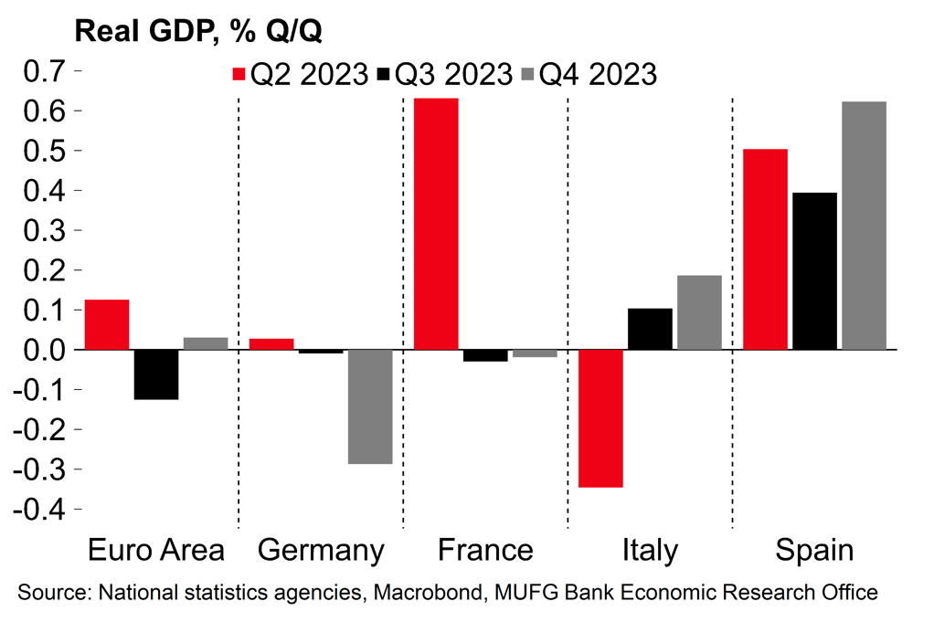 Chart 5: The euro area as a whole stagnated in H2 2023 but just managed to avoid a technical recession