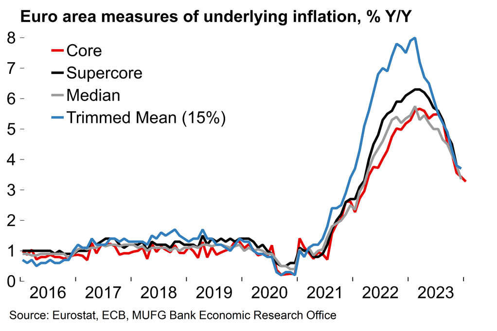 However, we remain optimistic about the path for euro area inflation. In the near-term, we expect food price inflation will continue its downward trend at a slightly faster pace in coming months and contribute less to the headline rate. More fundamentally, core inflation is still falling, however you slice it (Chart 3) and will expect rates will continue to ease over coming months. More forward-looking indicators suggest that pay pressures will continue to ease and so focus on second-round wage effects should gradually diminish. All told, we look for euro area headline HICP to average a little over 2% this year.