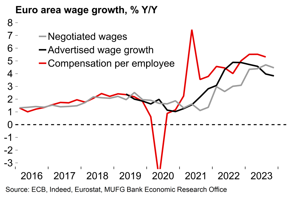 Chart 4: Nominal pay growth may well have peaked now in the euro area