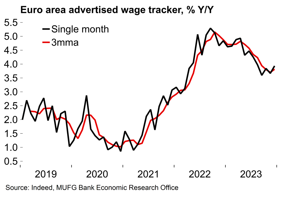 Our view is that, after the December blip, inflation will continue on a generally downward slope this year with underlying price pressures continuing to ease against the backdrop of weak demand. Meanwhile, input price data suggests that food prices may start to contribute negatively to headline inflation rates, and gas prices have also fallen at the start of the year after Europe successfully navigated a cold snap. The main upside risk factors relate to geopolitical risks in the Middle East but, while shipping costs are increasing, the evidence from business surveys in January suggests only a small effect on manufacturing input prices so far. All told, we expect headline euro area inflation will fall back to the ECB’s target by around mid-2024. In the absence of any upside shocks on wage growth, the path to rate cuts should be clear.
