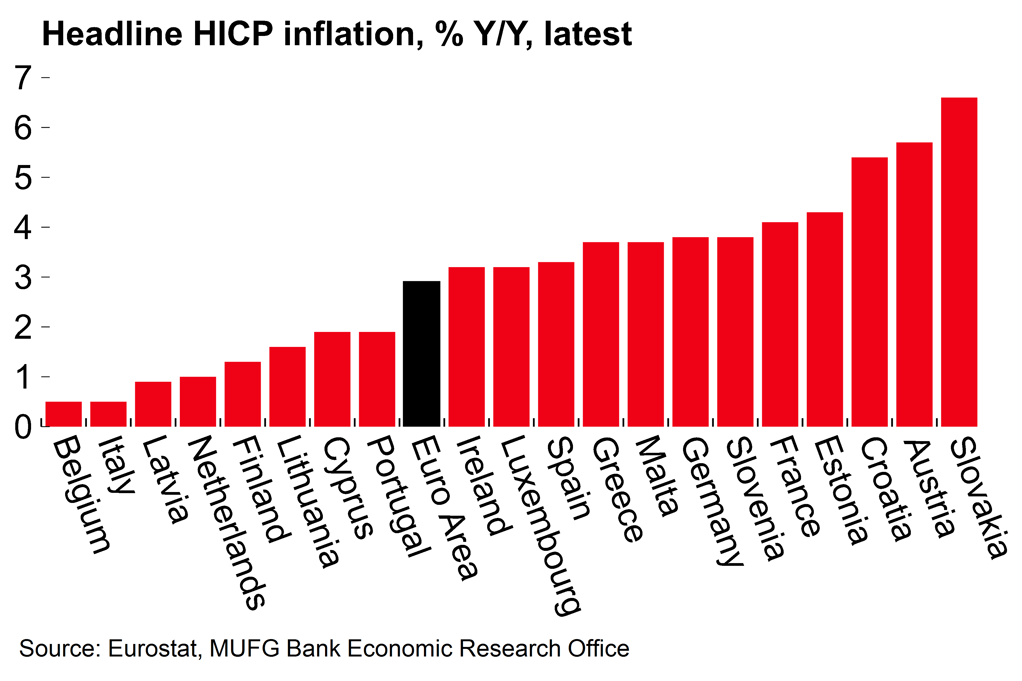 Chart 8: Latest euro area inflation rates (Dec. 2023)