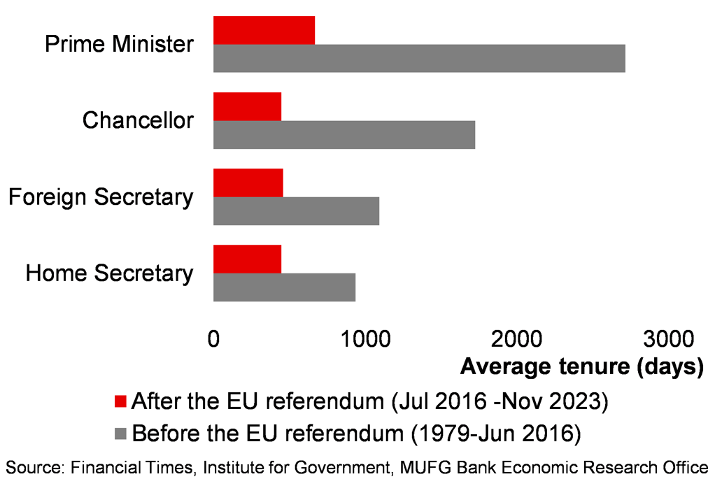 Chart 3: The turnover of cabinet ministers increased significantly since the EU referendum